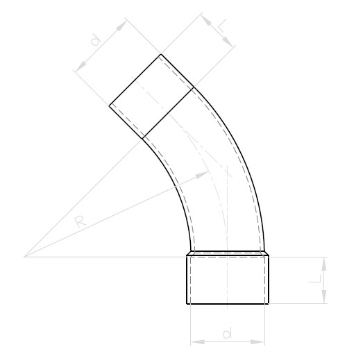 PVC U Transparent Elbow 45° in DIN Version, Plain / Socket