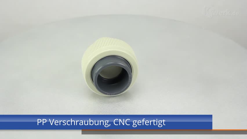 | - CNC machined - Screw section PP - Inlay part PVC - Union nut PP, outside knurled - O-Ring in EPDM, FPM on request other diameters possible on request. |