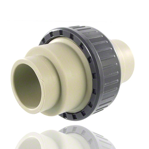 | - Screw section PP - CNC machined - - Inlay part PP - CNC machined - - Union nut PVC U standard - O-Ring in EPDM, FPM on request other diameters possible on request. |