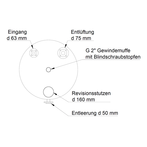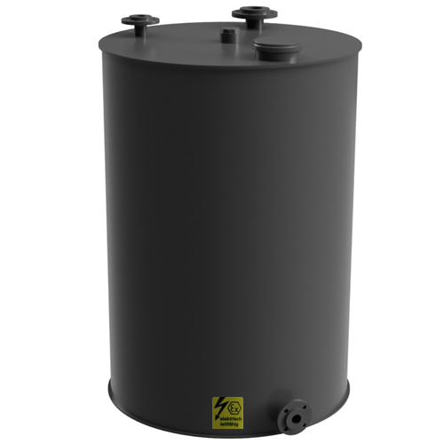 Capacity: Choice of 1000 liters, 1500 liters or 2000 liters Height without nozzle - Closed, round, cylindrical, upright tank - Material: PE-el (electrically conductive) - Made from sheet material by certified plastic welders - Color: black - with screw cap welded onto the top of the container as hand-hole lid DN 150 made of PE-el /EPDM - Venting nozzle d75 PE-el with PP/ST flanges PPs-el, on top of the tank - Inlet nozzle d50 PE-el with PP/ST flanges PPs-el, on top of the tank - Threaded socket G 2" PE-el with blind screw plug G2" PE-el, on top of the tank - Discharge nozzle d50 PE-el with PP/ST flanges PPs-el, at the bottom of the tank - Resistant to chemicals similar to PE100 Designed for: Wall thickness for media with a relative density of up to 1.3 Temperature: max. 30°C Other sizes and designs on request. |