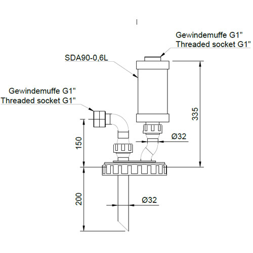 IBC screw cap DN 150 made of PE-el, with acid vapor separator SDA90 and filling connection G1", electrically conductive
