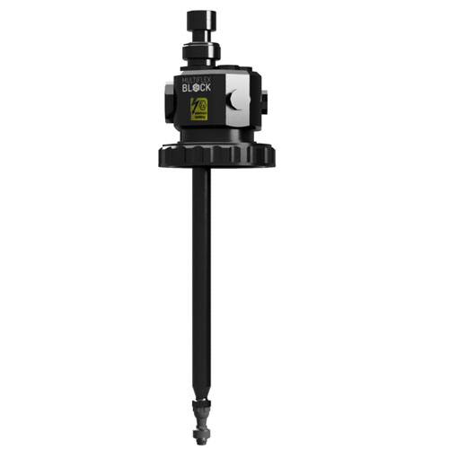 Spray lance DN 25 (d32) made of PE electrically conductive, adjustable, with tank cleaning nozzle made of PVDF-el - using the example of an application with the MULTIFLEX block, the block is not included in the price - for full-surface rinsing of the tank interior walls through 360° spray coverage by rotating spray head with three flat spray nozzles Drive is provided by the cleaning medium - Flow range: 15.9 to 26 l/min - Recommended pressure range: 2 to 4 bar - Spray pipe d32x3 mm - Spray tube material: PE-el electrically conductive, black - Total length: 800 mm - Spray connection with threaded socket G1" internal thread - Vertical threaded connection - Compression fitting made of PE-EL, d32/G2" inch external thread, can be screwed in at the top on the Multi Flex Block® example - Tank cleaning nozzle material: PVDF-el, electrically conductive, black - Tank cleaning nozzle can be removed - O-rings EPDM - Vertical installation position - Electrical potential is discharged, suitable for Ex zones 1 and 2 |