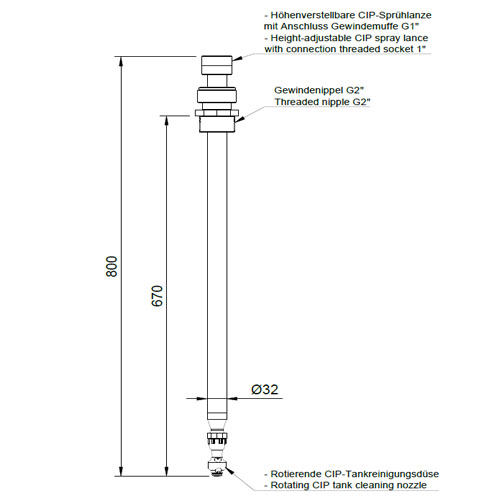 PE-el spray lance DN 25 (d32), electrically conductive, adjustable, with tank cleaning nozzle made of PVDF-el, PE-el / EPDM / PVDF-el version