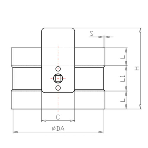 PP-EL-s control damper (PPs-el) with motor support plate in duct direction, with sleeve.