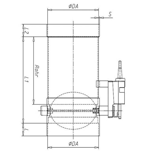 PP-el-s control damper, motor support plate in pipe direction, socket on both sides, electrically conductive
