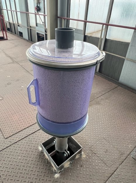Process of CO₂ RemovalThe CO₂ absorption granulate used reacts chemically with the CO₂ contained in the air. In an exothermic reaction, the hydroxides in the granulate are converted into carbonates and water, permanently binding the CO₂. The Kwerk absorbers are filled with medical-grade absorption granulate. This ensures complete removal of CO₂ from the incoming air so that the demineralized water in the tanks remains free from contamination. A practical advantage: Towards the end of its service life, the granulate indicates exhaustion by a distinct color change from white to violet. Since the absorbers are equipped with a transparent PVC-U outer tube, this color change is visible from the outside at any time. Optionally, the absorbers can be equipped with sterile filter cartridges to reliably retain bacteria, spores, fungi, and other microorganisms. |