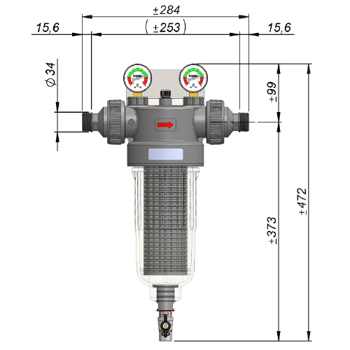 Cintropur water filter Semi Line filter housing NW 280, 1 inch external thread