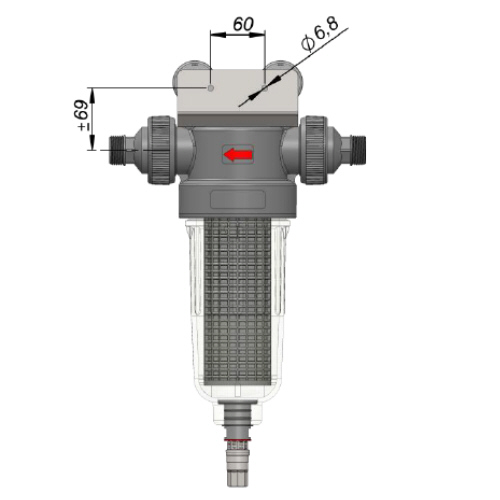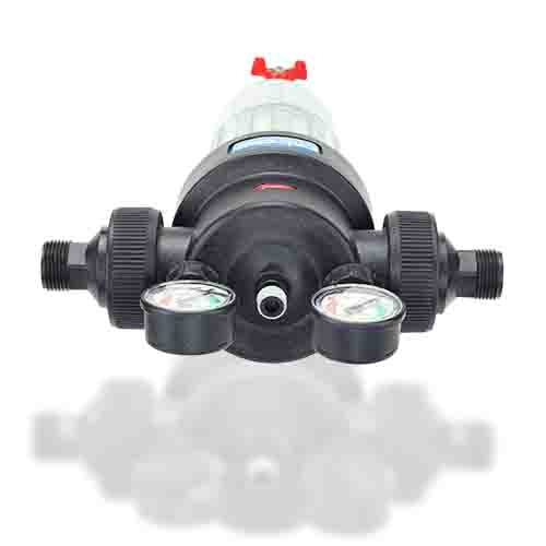 Filter type: NW280 - Connections: 1 inch - Flow rate: 7 m3/h at delta P 0,2 bar - Operating pressure: 10 bar, max. pressure: 16 bar - Max. Operating temperature: 50°C - Filter head: Polypropylene (PP) + 20 % Glass fiber (GF) Connections + union nut:PP+ 20 % GF - Filter bell: PET - Filter key: ABS - Filter support basket: PP + 20 % GF - O-rings: Nitrile Butadiene Rubber (NBR) - Centrifuge + end cap: Polypropylene (PP) + foam rubber (2K) - Drain screw: Polyamide (PA) + Polyester (2K) - Filter fleece: Polyester (not washable) or Nylon (washable) - Filter surface: 530 cm2 - Standard equipment: filter fleece in 25 micron , wrench, drain ball valve ½ inch brass nickel plated,2 pressure gauges with glycerin 0-20 bar 1/4 inch brass + 2 connections 1 inch. - Option: stainless steel wall bracket in 2 mm. - Other available finenesses: Non-washable: 1 -5-10-25-50-100 microns (set of 5 filter fleeces) Washable: 150-300 microns. |