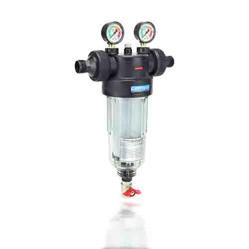 GENERAL DESCRIPTIONCintropur® water filters are intended for domestic and industrial water system filtration, as well as rain, spring or well water recovery and treatment. They are also suitable for watering and irrigation. Cintropur® performs either a mechanical filtration of particles, a chemical filtration through activated carbon absorption, or sterilizes water by ultraviolet radiation of UV-C type. Cintroclear® purifiers filter drinking water without unnecessarily wasting any of the precious resource.Many accessories and spare parts are available from your distributors. The water filters of the CINTROPUR® series are designed for filtering clear water that is only slightly contaminated with suspended solids, such as tap water, rainwater, well water and spring water. Other non-aggressive liquids can also be filtered. Possible areas of application include industry, public institutions and agriculture. The materials used in the manufacture of the filter are suitable for filtering liquid food. The NW 500 TE with activated carbon is widely used for dechlorination, odor elimination, taste improvement, and treatment of pesticides and herbicides. Basic principle Protection of industrial water circuits, common property and agricultural facilities by filtering out particles suspended in water (soil, sand, rust particles, etc.). APPLICATIONS: - Industry : protection of sanitary networks and production machinery. - Agriculture : filtration for irrigation systems - Filtering of water for animal drinkers - Filtering of rain and well water. - General public : (hotels, restaurants, schools, high-rise buildings....) Protection of sanitary networks and household accessories connected to them. Advantages: - High and constant flow rate - Low pressure drop - Centrifugal pre-filtration (vortex) - Professional, robust and absolutely reliable unit - Easy and convenient drainage (drain ball valve at the bottom of the bell) - Exclusive, economical and low-cost filter cuff system - Constant control of the contamination of the filter cuff (transparent filter bell) Water treatment: TE series filters (water treatment) are equipped with a distribution pipe for various active substances. Polyphosphates, Silicates, SilicoPhosphates Effective at up to 60°C, these products are used to reduce the harmful effects and deposits of limestone. As is commonly known, these products can also be used as rust inhibitors for new plumbing installations. CINTROPUR SCIN activated carbon The large volume of pores and large contact surface area make our activated carbon an excellent choice for improving taste, removing odors, reducing chlorine levels, ozone and contaminants such as pesticides and other organic substances found in water. |