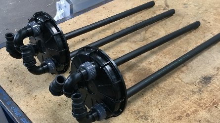 IBC - TANK screw cap with PE suction lance and acid vapor separatorIBC-screw cap DN 150 - DN 200 from PE consisting of: - screw fitting with PE suction lance and male thread - optional foot valve - acid vapor separator of type SDA 90 with granulate for gas absorption Detailed information about acid vapor separators and granulate you will find here. Optionally we can deliver this item as follows: - cap with captive attachment parts in PE or PE-EL as rotating insert and/or - electrically conductive PE (PE-EL) , coloured red, attachment parts completely from PE-EL. Please inquire this item separately. The pictures show an example of our product line. According to your application we can design customized screw caps. Please send us your inquiry. Other designs and material combinations can be delivered on request. All items you will also find in our webshop. |