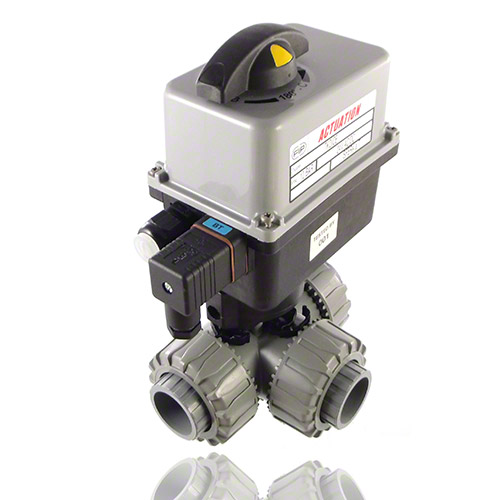 ABS 3-Way Ball Valve / T-bore ball, Electrically actuated, plain female ends, EPDM