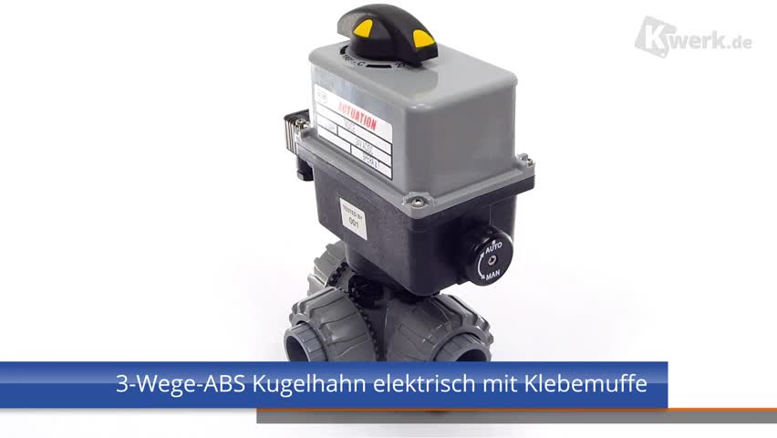 ABS 3-Way Ball Valve, Dual Block, Electrically actuated Electric actuator with plastic housing. - Temperature: -10° C / +55° C Electrical connections Power supply: - 90-240V / 50-60Hz (AC), (24V AC / DC) without surcharge available - other voltages on request - connector DIN 43650 3P+T - Limit switches: gland ISO M20 Standard equipment: - Emergency manual override - Visual position indicator - 2 auxiliary and adjustable limit switches FC1, FC2 (5A)Torque limiter Options: - Positioner 4-20 mA or 0-10V - Fail safe security block - Heating resistor - Feed back potentiometer 100 - 1000 - 5000 - 10000 Ohm - position transmitter - 2 additional limit switches - IP67 or ATEX EEx |