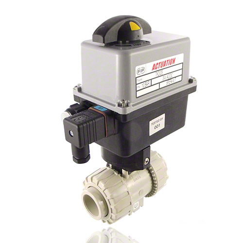 PP 2-Way Ball Valve, Electrically actuated, plain female ends, FPM
