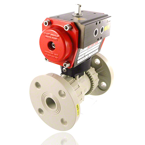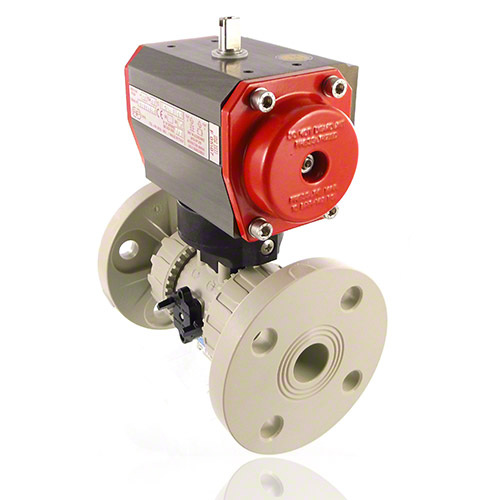 PP 2-Way Ball Valve, Dual Block, Pneumatically actuated, fixed flange, NO, FPM