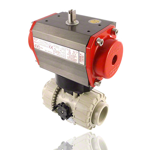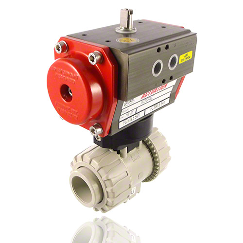 PP 2-Way Ball Valve, Dual Block, Pneumatically actuated, plain female ends, NC, EPDM