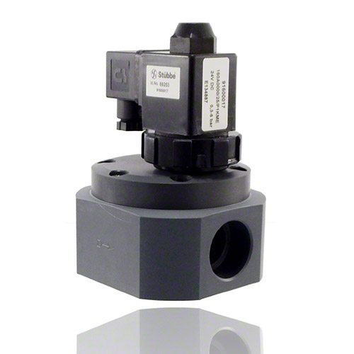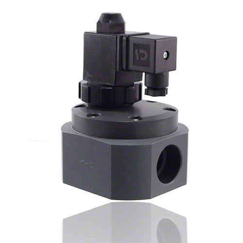 PVC-U 2/2 Way Solenoid Valve, normally closed, socket end for solvent welding, 24 V DC, FPM