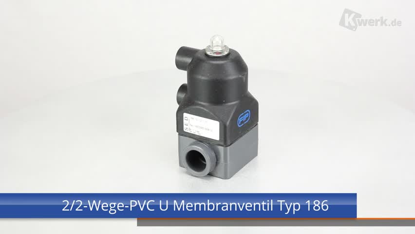 PVC U 2/2-way diaphragm valve, union version, NC, Type 186