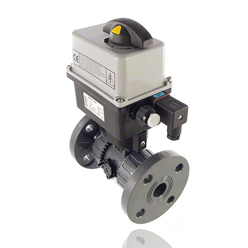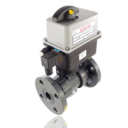 PVC-U 2-Way Ball Valve, Electrically actuated, fixed flanges, FPM
