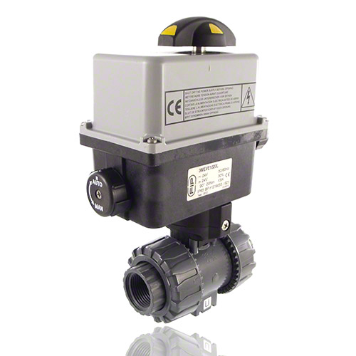 PVC-U 2-Way Ball Valve, Electrically actuated, threaded female ends, FPM