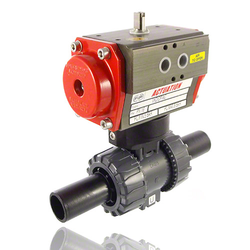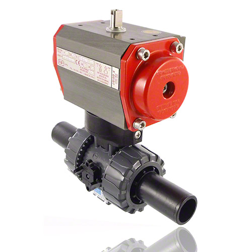 PVC-U 2-Way Ball Valve, Dual Block, Pneumatically actuated, PE100 SDR 11 male end, DA, EPDM
