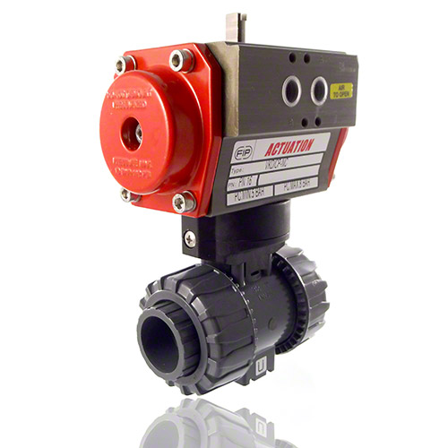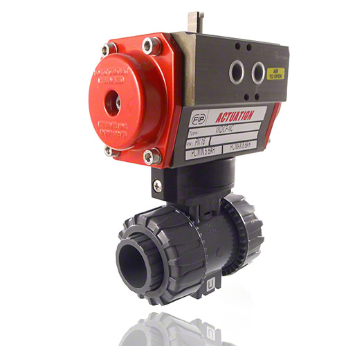 PVC-U 2-Way Ball Valve, Dual Block, Pneumatically actuated, plain female ends, NO, FPM