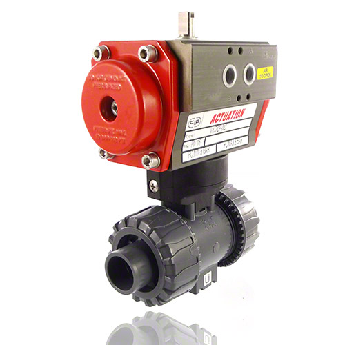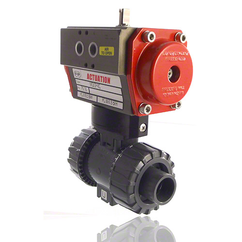 PVC-U 2-Way Ball Valve, Dual Block, Pneumatically actuated, plain male ends, NC, FPM