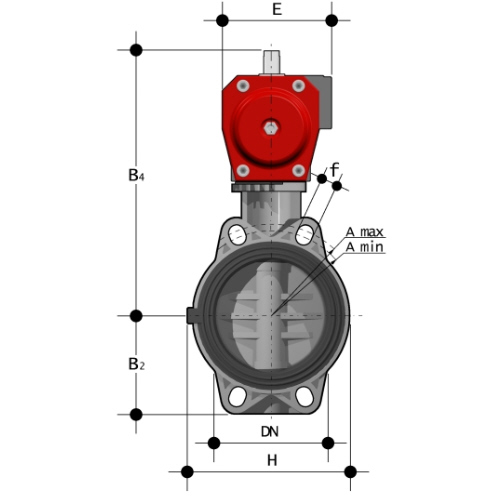 - interchangeable Disk in PP-H with through shaft, available in different thermoplastic materials: PVC-U, PVC-C, ABS, PVDF - Overall dimensions of the valve in accordance with standard ISO 5752 (DN 40÷200 Medium series 25, DN 250÷ 300 Long Series 16) and DIN 3202 K2 and ISO 5752 (DN DN 65÷200 K2, DN 250÷300 K3) - Can also be installed as an end line valve, bottom discharge valve or tank dump valve - Special Lug version PN 10 fully drilled according to DIN 2501 or ANSI B16.5 cl.150 with molded-in AISI 316 stainless steel threaded inserts - Valve material compatibility (PP-H) with water conveyance, drinking water and other food substances according to current regulations - Possibility of installing a manual reducer or pneumatic and/or electric actuators by applying an ISO standard drilling PP-GR flanges. DN 40 ÷ 200 valve equipped with plate with rack in PP-GR. For actuated versions with flange drilled according to ISO 5211 F05, F07, F10. DN 250÷300 valve, fitted with one-piece top flange in high mechanical strength PP-GR with mounting flange for internal components drilled according to standard ISO 5211 F10 (excluding DN 350÷400), F12, F14. Accessories: - optical position indicator* - electro pneumatic positioner - pneumatic positioner - limit-switches box - 3-5/2 way pilot solenoid valve Type of working: - SA - single acting: opening movement by air, closing movement by springs (NC normally closed - NO normally open) - DA - double acting: opening and closing movements by air |