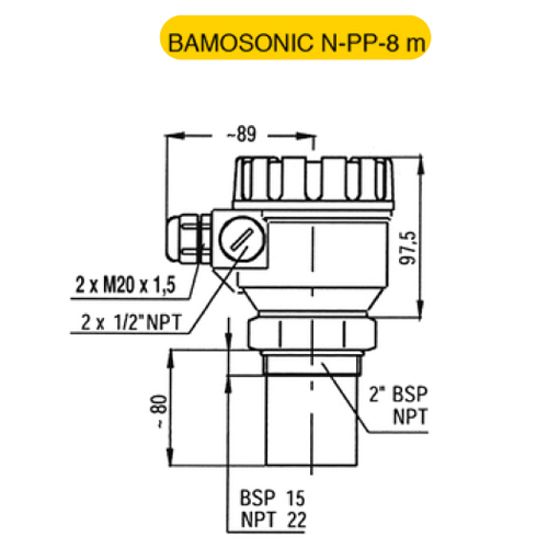 Ultrasonic level meter - BAMOSONIC, with programming module Ty N-DIS