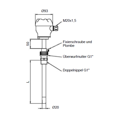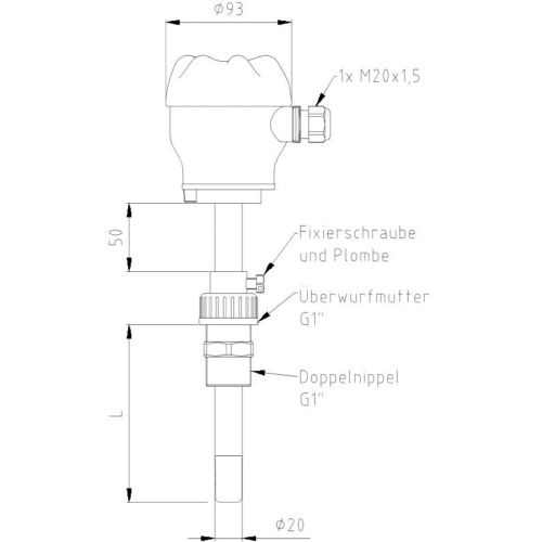 - Overfill protection with connection head, Ø20mm, PE, adjustable
