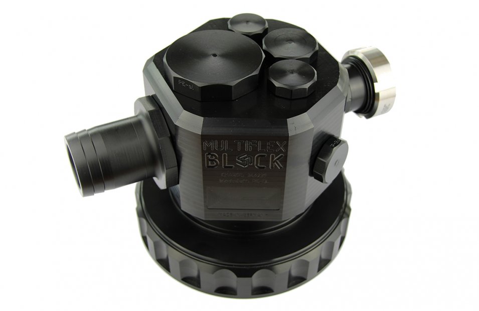 MULTI FLEX BLOCK® - Electrically conductive version- connection of hose nozzle PE-electrically conductive 2 inches - connection of milk pipe thread PE-electrically conductive 1 1/4 inch - blind plug PE-electrically conductive - screw cap PE-electrically conductive |