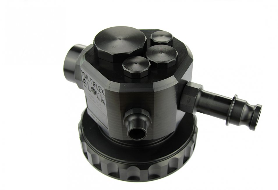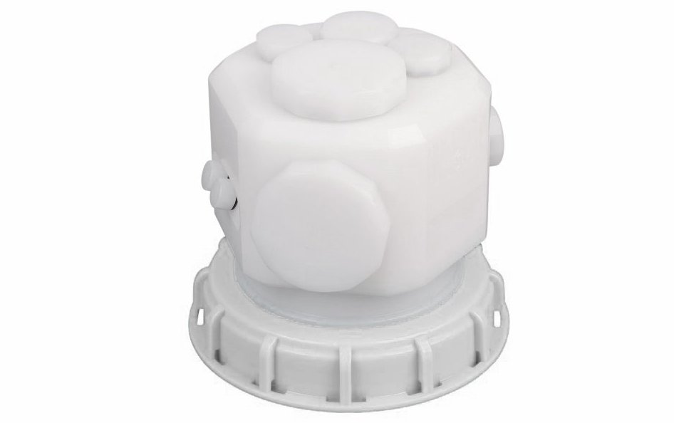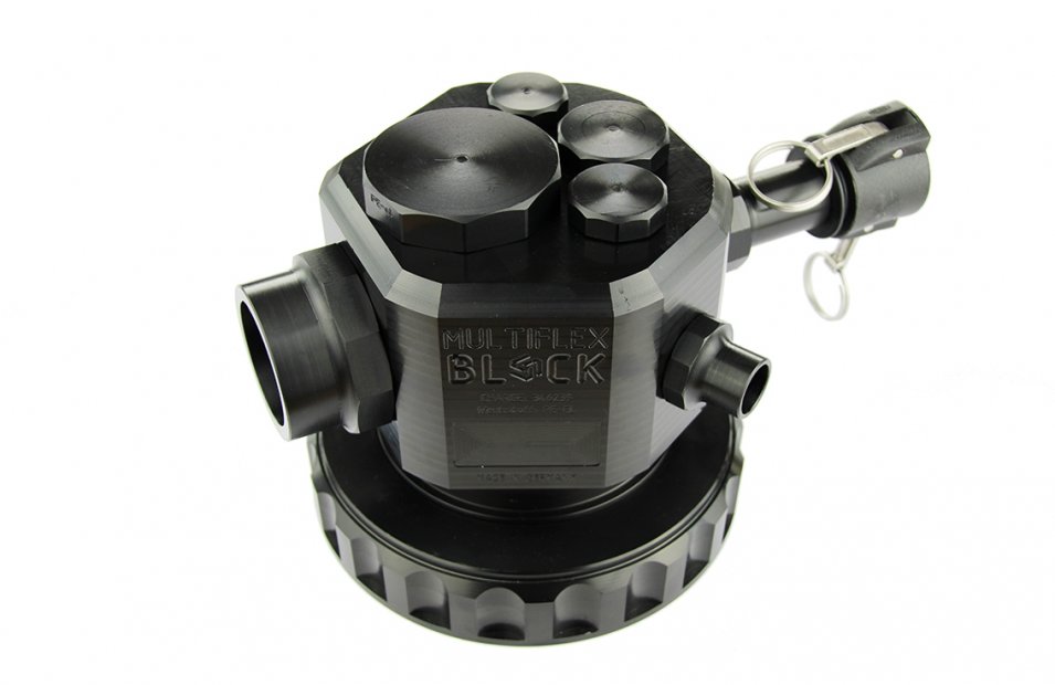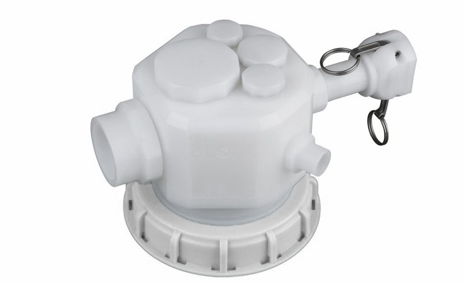 ![]() New patented MULTI - FLEX - BLOCK VALVE for filling and emptying IBC containers and other chemical containers. In the horizontal plane there are 4 ports in version T-bore up to 2 inch internal thread available. This filling or removal level is ideal for uncomplicated filling and emptying of the container. Ideally, the MULTI - FLEX - BLOCK is equipped with an internal thread for grounding M5. In the vertical plane, 4 holes are arranged up to 2 inches internal thread for ventilation, extraction and monitoring. 2 pieces of cable glands for suction lances and other measuring equipment are arranged accordingly. The MULTI-FLEX-BLOCK is suitable for standard IBC covers DN 150, DN 200 and DN 400. The cover with the MULTI-FLEX-BLOCK is gas-tight with a rotatable insert in captive design. We produce in our workshop, the MULTI-FLEX-BLOCK in PE electrically conductive incl. Electrically conductive IBC cover, in PE natural - FDA compliant and in PVDF. Other materials are available on request. Technical Data - Overview -Advantage: - high operational safety and long service life, low maintenance and easy connection of the valve to the existing infrastructure Use: - Chemistry and process engineering in general, water and wastewater technology Usage: - filling, emptying and monitoring of IBC bulk containers (IBCs) and other chemical containers Function: The Multi Flex block is screwed onto the IBC container and assembled with attachments according to its function Body: - PE natural, FDA compliant - PE-EL (electrically conductive) - PVDF lid - PE-FDA compliant - PE-EL (electrically conductive), CNC machined Operating pressure: - pressureless operation Connections: - 4 ports at the top and 4 ports at the side - 4 connections below as connections for suction lances etc. - Size 2 inch, 1 inch, ¾ and ½ inch process connections with female thread as T-type - M 12 x 1.5 for cable gland - M 5 female thread for ground connection You can also configure the item yourself: ![]() |