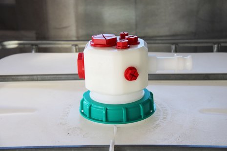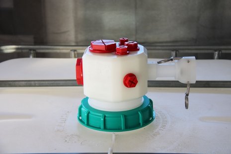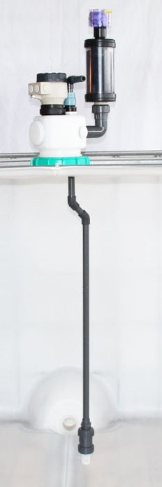 ![]() IBC-1000l screw cap DN 150 green, with Tri Clamp connection, suction lance with check valve |