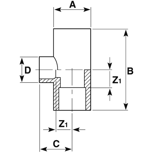 ABS Reducing Tee 90° with reduced branch and solvent weld sockets
