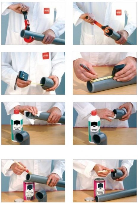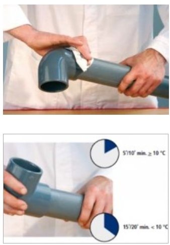 The adhesive used to connect parts belonging to the PVC-U system must not be used for connecting other parts that do not belong to the system.