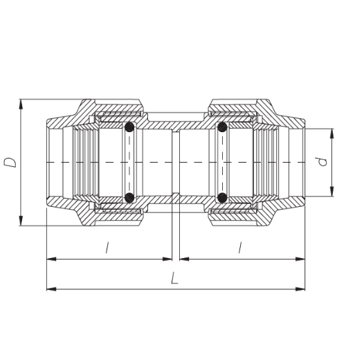 PP Compression fittings type UNIDELTA for PE pipes, coupling