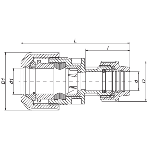 PP Compression fittings type UNIDELTA for PE pipes, special coupling for transition from PE to steel, copper, lead, plastic