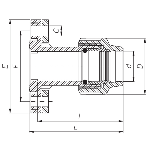 PP Compression fittings type UNIDELTA for PE pipes, flange socket piece