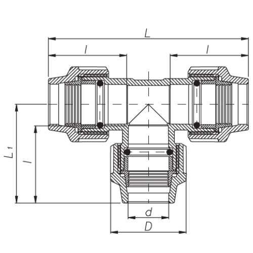 PP Compression fittings type UNIDELTA for PE pipes, tee 90°