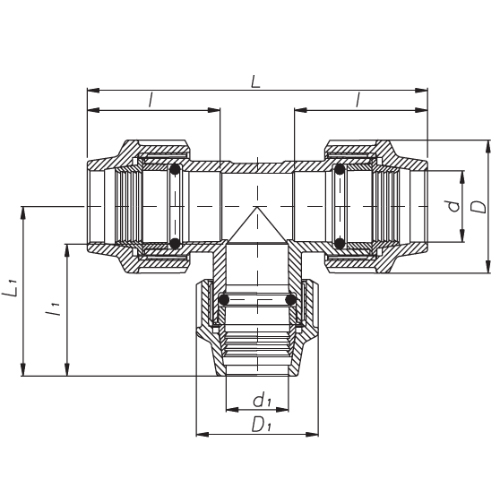 PP Compression fittings type UNIDELTA for PE pipes, T-piece 90° reduced