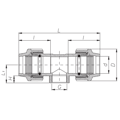 PP Compression fittings type UNIDELTA for PE pipes, T-piece 90° with internal thread