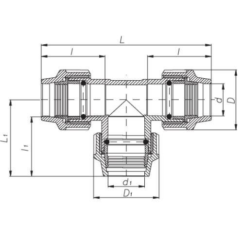 PP Compression fittings type UNIDELTA for PE pipes, T-piece 90° with enlarged outlet