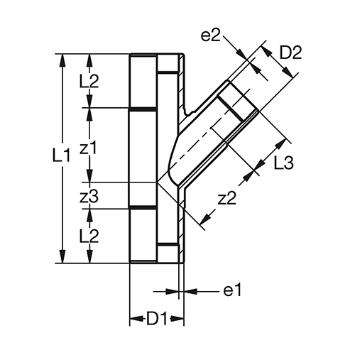 The geometric properties of our PE fittings comply with the EN 1555 and EN 12201 standards regarding the outer diameter and wall thickness. Tolerances for the Z-dimensions vary depending on the dimension. For a diameter smaller than or equal to 160 mm, the tolerance is +/- 3 mm, while for a diameter of 180 mm and above, it is +/- 10 mm.