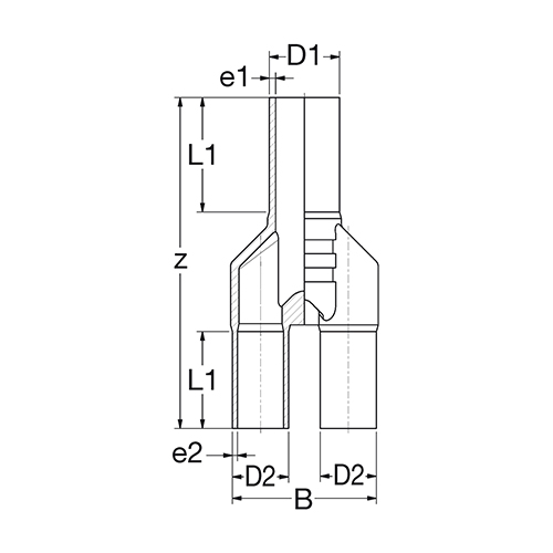 D1-D2 [mm] e1 [mm] e2 [mm] L1 [mm] L2 [mm] z [mm] B [mm] Weight PU Item no Add to cart