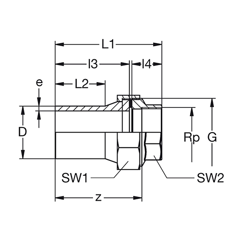 PE100-Stainless steel Transition-Union, SDR11, PE100-V2A, long female