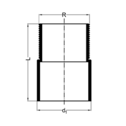 PE Male thread adaptor long, for soil & waste systems