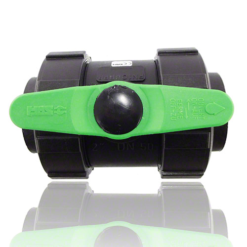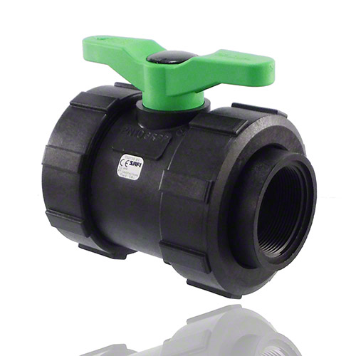 2-ways ball valve PPGF, female thread, FPM = green handle