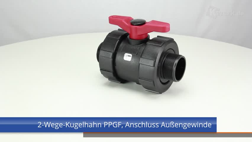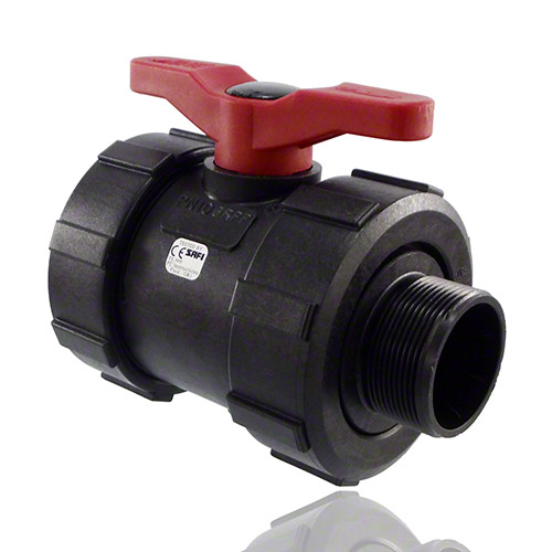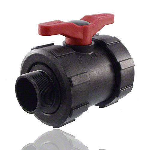 2-ways ball valve PPGF, male thread, EPDM = red handle