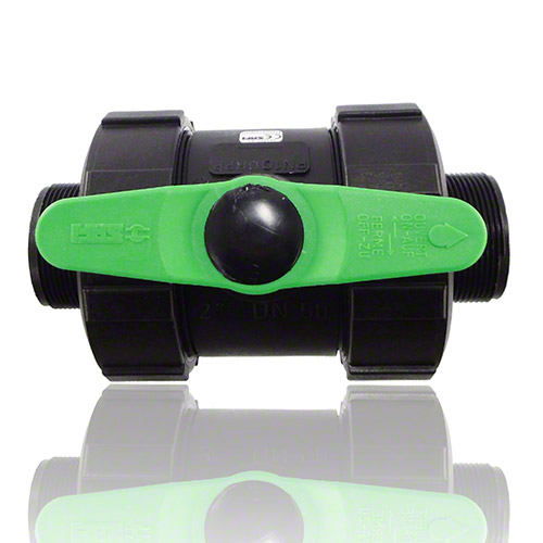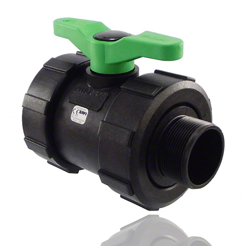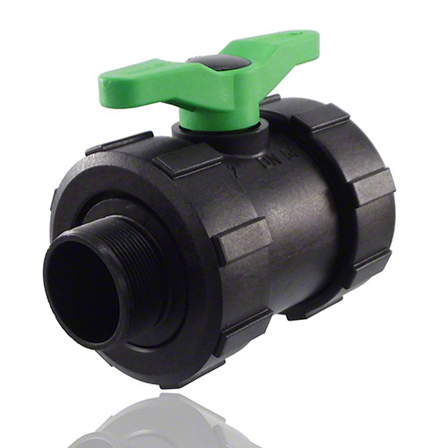 2-ways ball valve PPGF, male thread, FPM = green handle