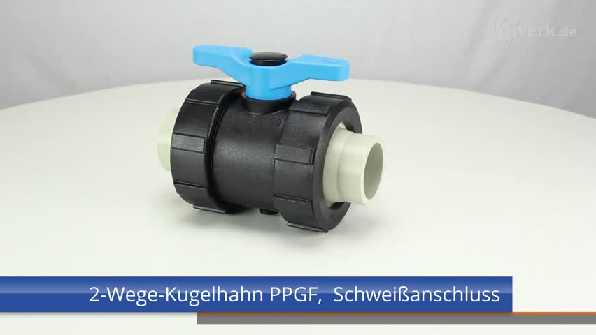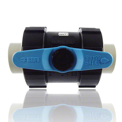 2-ways ball valve PPGF, PE-stubs, FEP/FFPM = blue handle