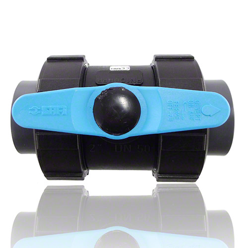 2-ways ball valve PPGF, PVC-U metric sockets, FEP/FFPM = blue handle